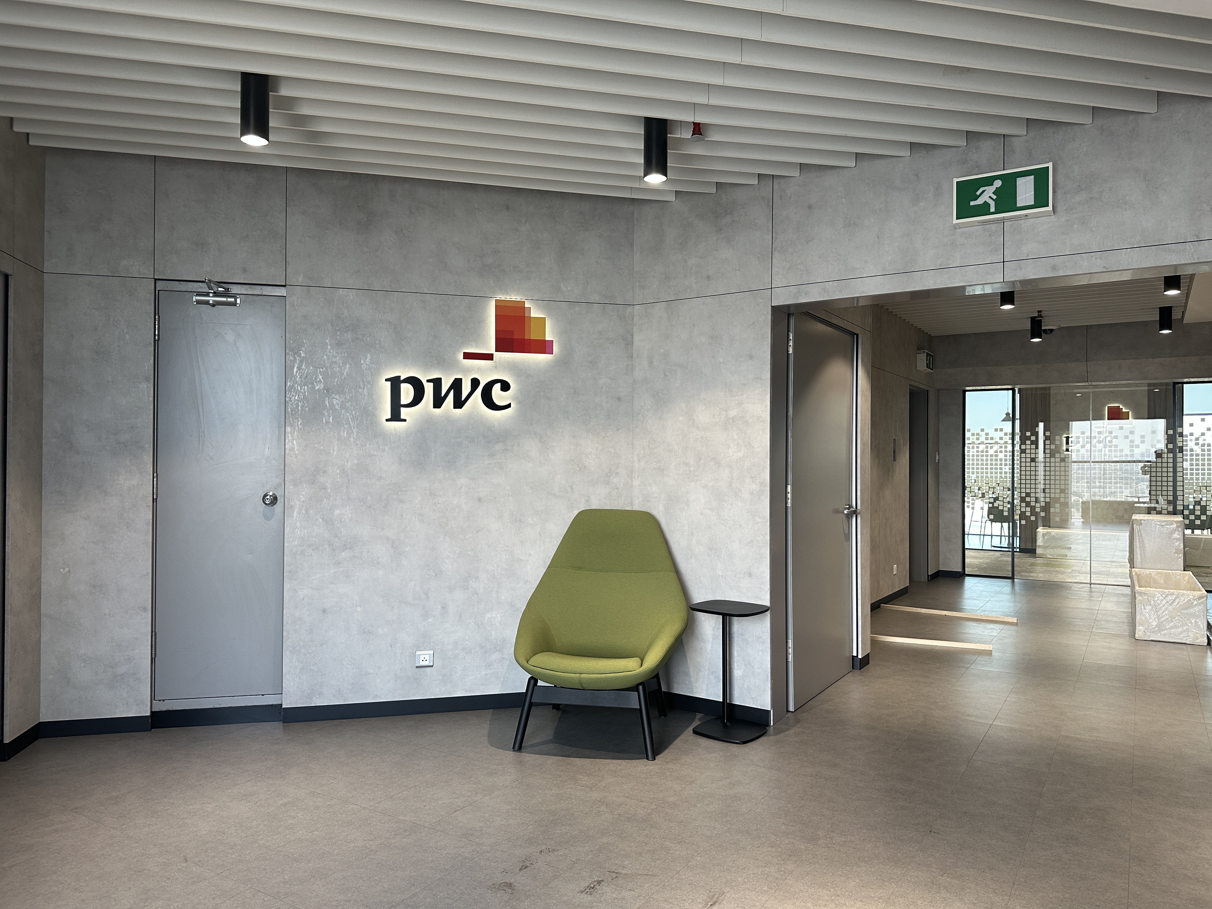 High-end corporate office fit-out for PwC Khobar, reflecting a professional and premium work environment.